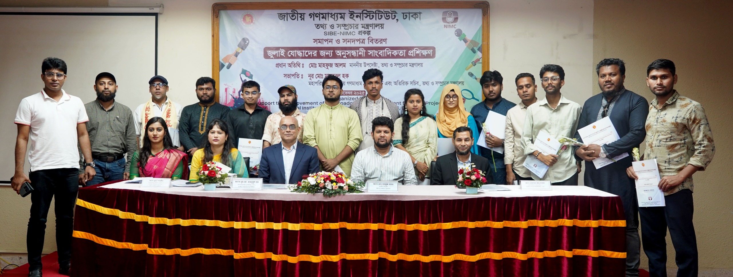 সমাপন ও সনদ বিতরণ অনুষ্ঠানটি সঞ্চালনা করেন জাতীয় গণমাধ্যম ইনস্টিটিউটের সহকারী পরিচালক তানজিম তামান্না। অনুষ্ঠানের শেষে প্রশিক্ষণে অংশ নেওয়া ১৬ জন জুলাই যোদ্ধাকে সনদপত্র প্রদান করা হয়। সমাপন ও সনদ বিতরণ অনুষ্ঠানে জাতীয় গণমাধ্যম ইনস্টিটিউটের কর্মকর্তারা উপস্থিত ছিলেন।